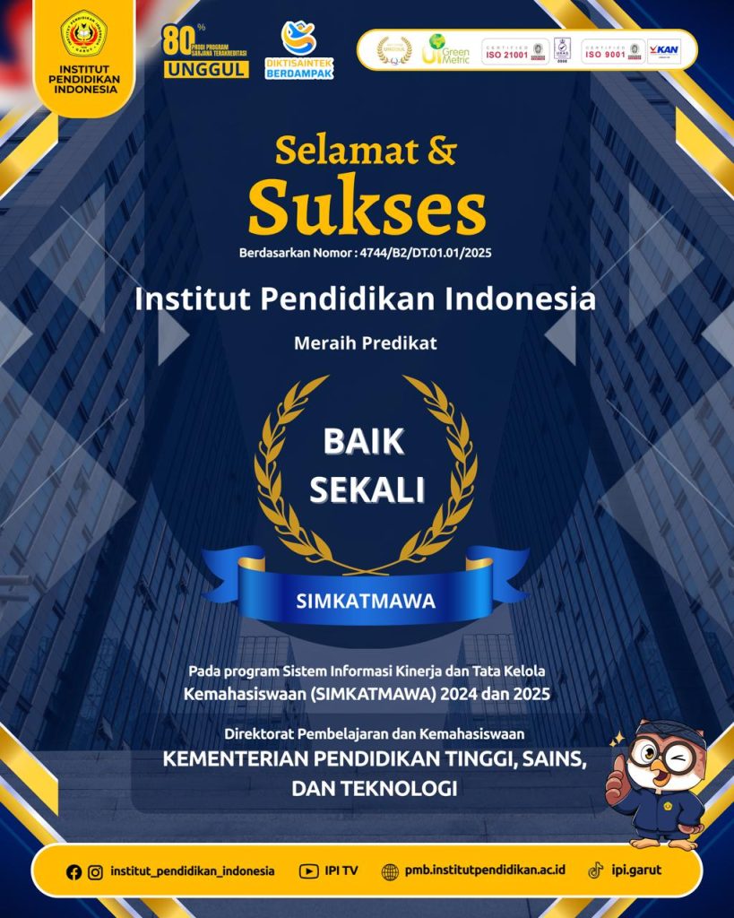 Garut, 27 November 2025 – Institut Pendidikan Indonesia (IPI) Garut kembali mencetak prestasi gemilang dengan meraih predikat “Baik Sekali” pada program Sistem Informasi Kinerja dan Tata Kelola (SIMKATMAWA) untuk tahun 2024 dan kembali mengulangi prestasi serupa di tahun 2025. Penghargaan ini diberikan oleh Direktorat Pembelajaran dan Kemahasiswaan Kementerian Pendidikan, Kebudayaan, Riset, dan Teknologi Republik Indonesia.
